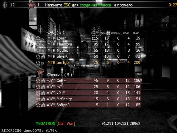 100. |MTR| vs |CgT| 2-0 11/02/2010 Чайна: 12:3 Перестрелка: 12:3